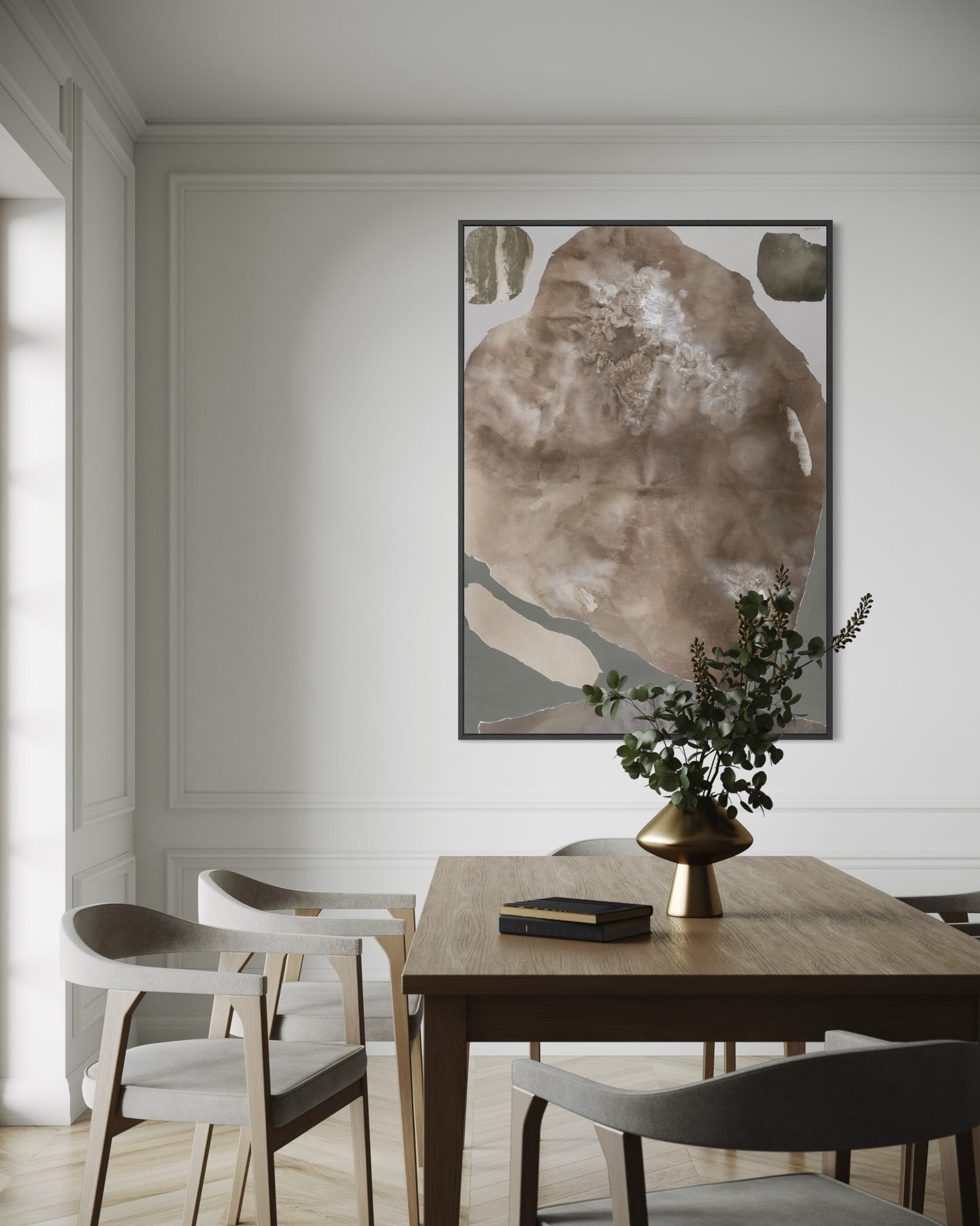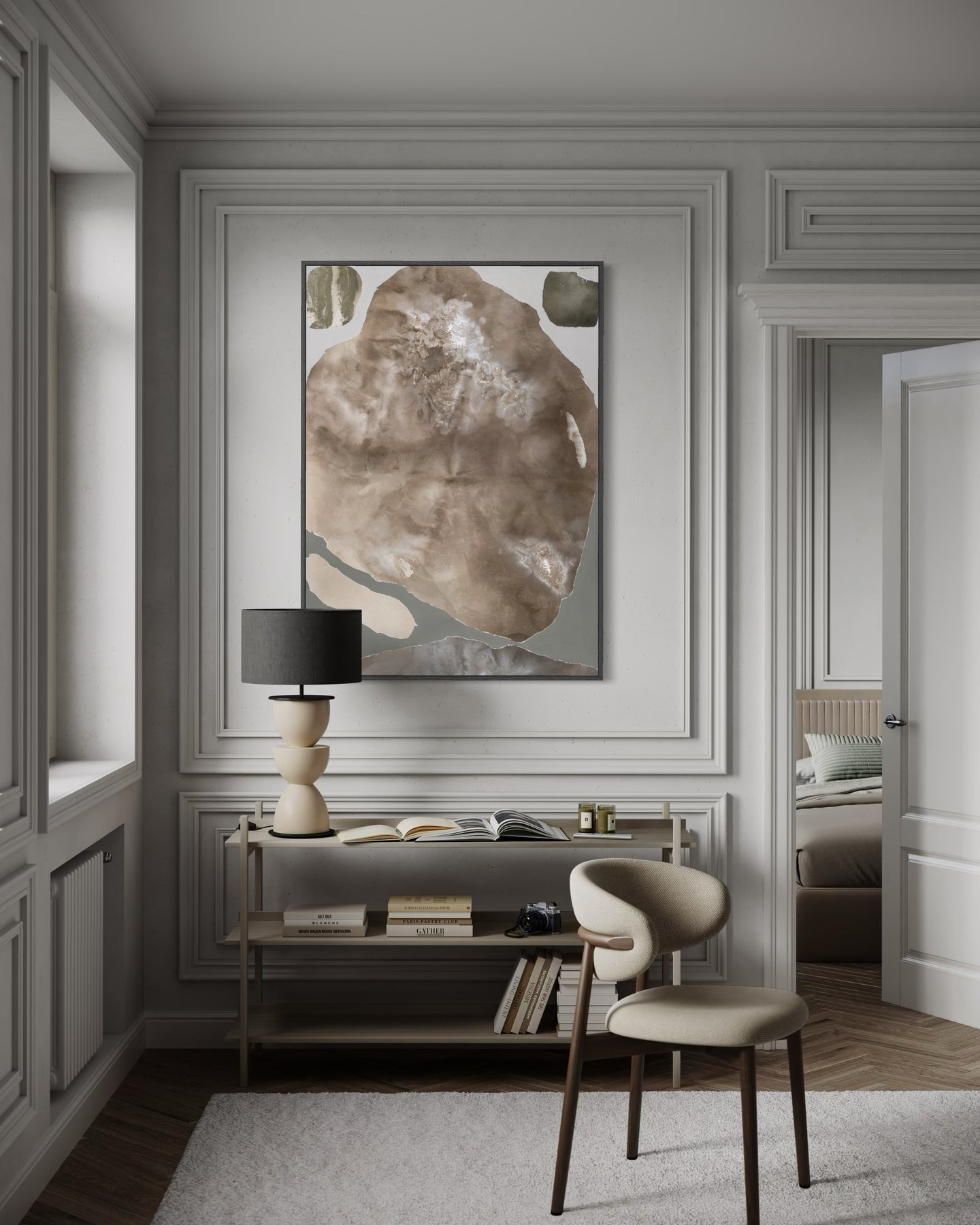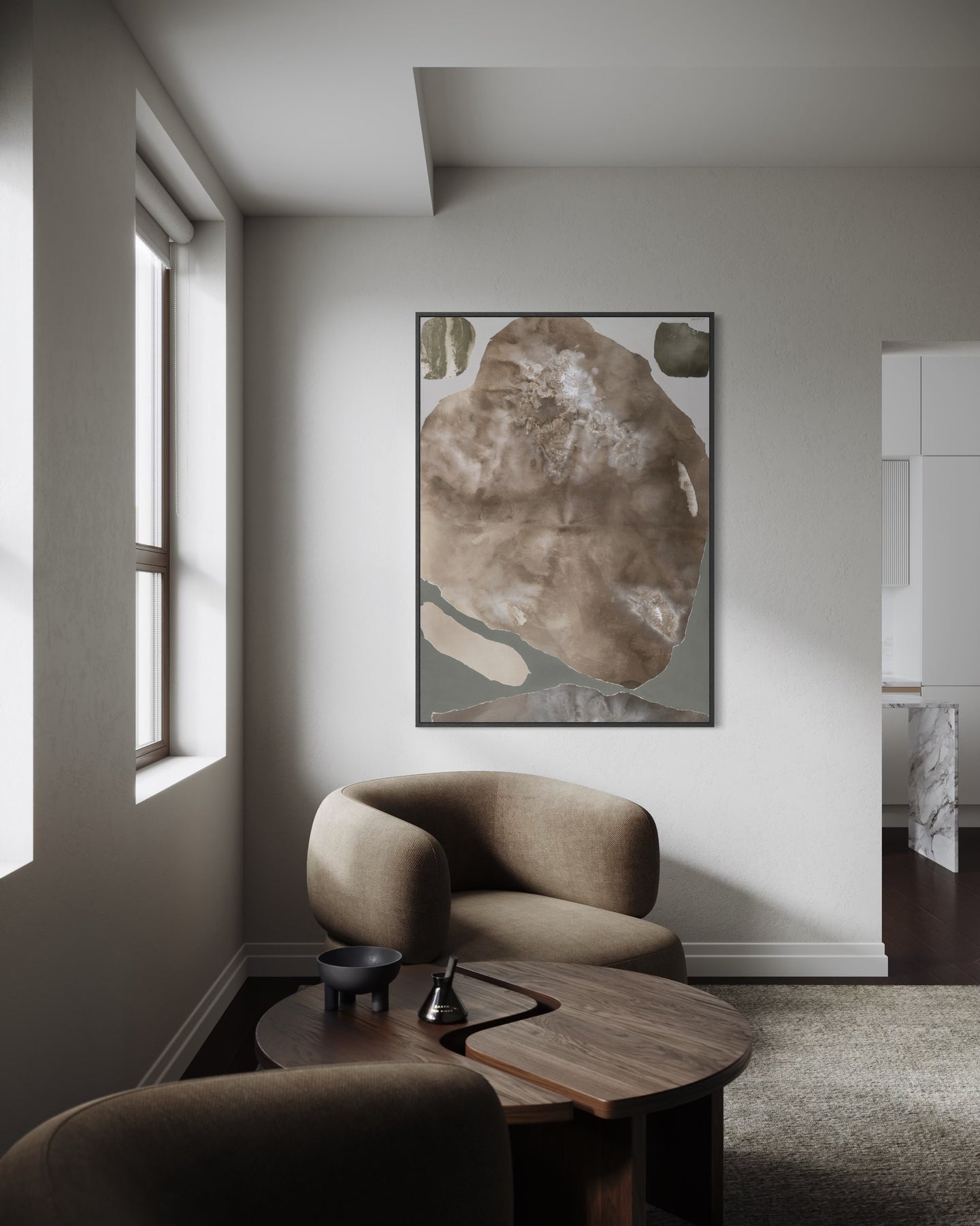 Monika Zajarskiene’s I Accept is a serene study in balance - a composition shaped by muted, harmonizing tones that gently settle across the canvas. Soft transitions of warm earth shades blend seamlessly, creating a sense of order and inner calm. Natural textures rise subtly to the surface, adding depth while maintaining the artwork’s clean, understated simplicity. The result is a piece that brings clarity, stability, and quiet refinement to any interior.