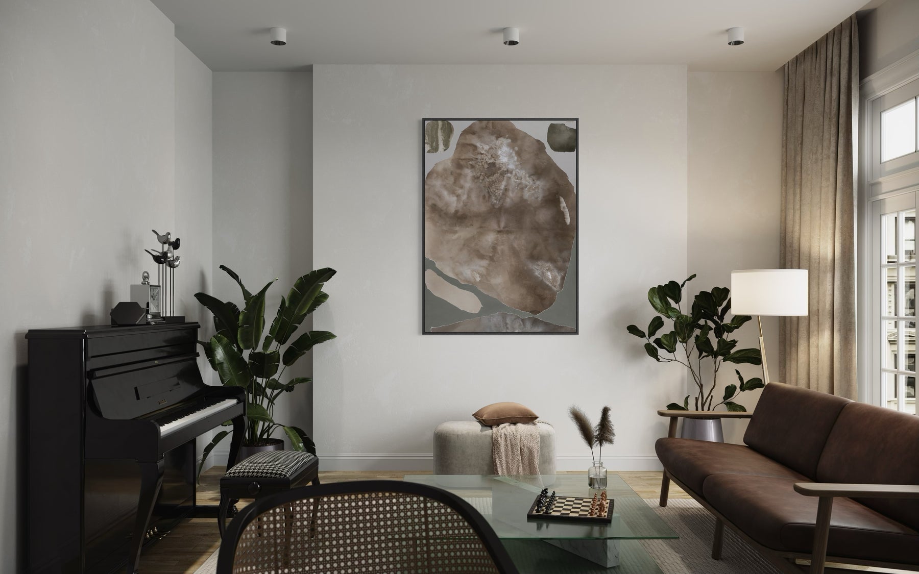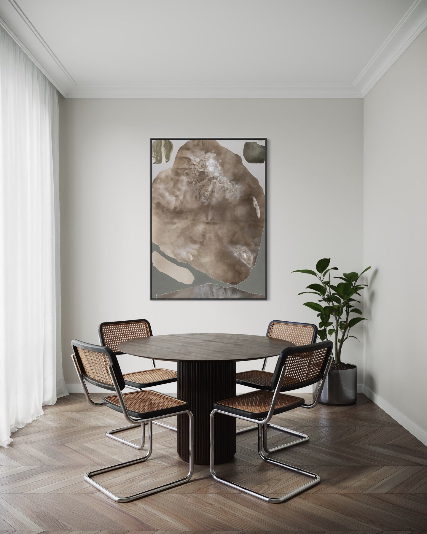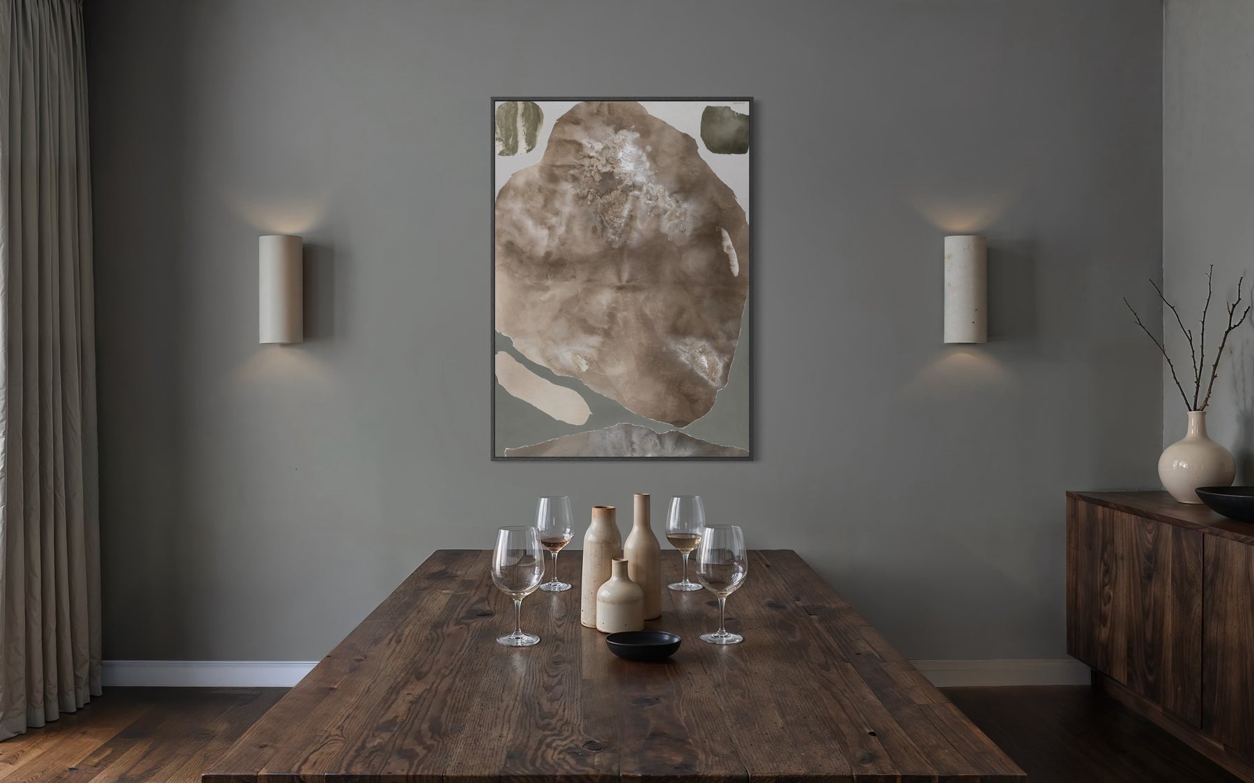 Monika Zajarskiene’s I Accept is a serene study in balance - a composition shaped by muted, harmonizing tones that gently settle across the canvas. Soft transitions of warm earth shades blend seamlessly, creating a sense of order and inner calm. Natural textures rise subtly to the surface, adding depth while maintaining the artwork’s clean, understated simplicity. The result is a piece that brings clarity, stability, and quiet refinement to any interior.