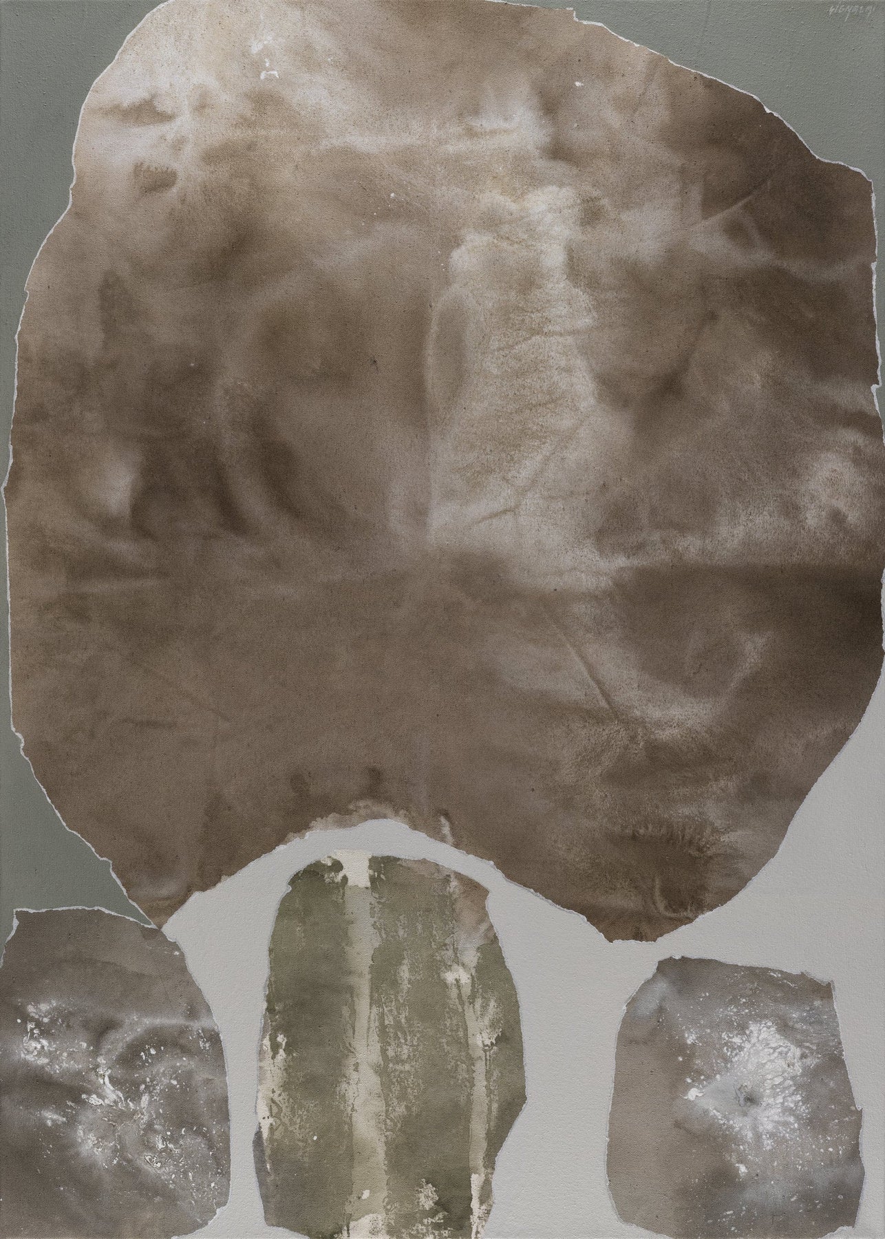 Abstract artwork “I Feel” by Monika Zajarskiene featuring soft, naturally flowing earthy tones and organic shapes. Muted browns, greys, and gentle textures create a calming, harmonious composition that evokes emotional presence and inner stillness. Contemporary minimalist abstract painting ideal for serene, modern interiors and neutral décor.