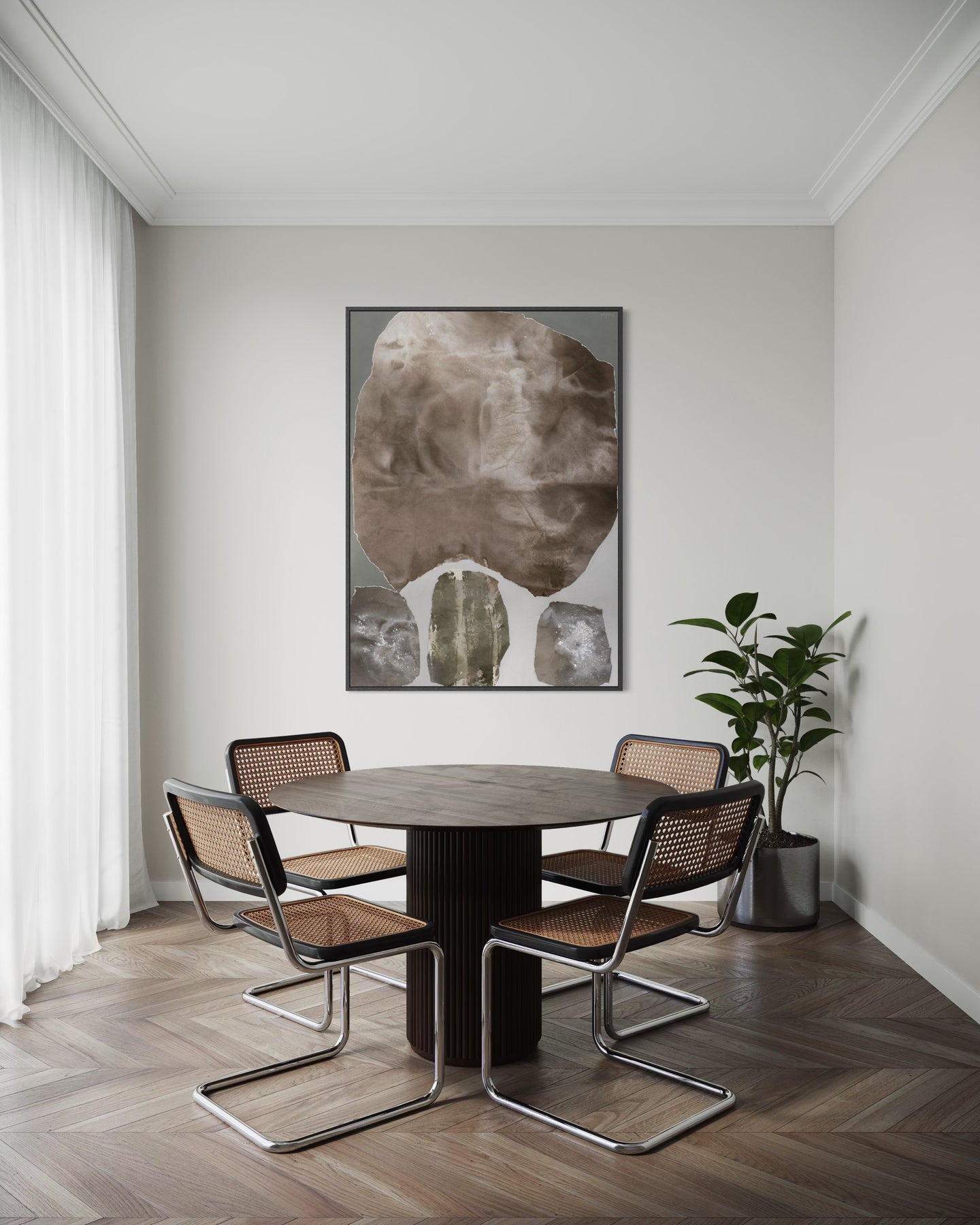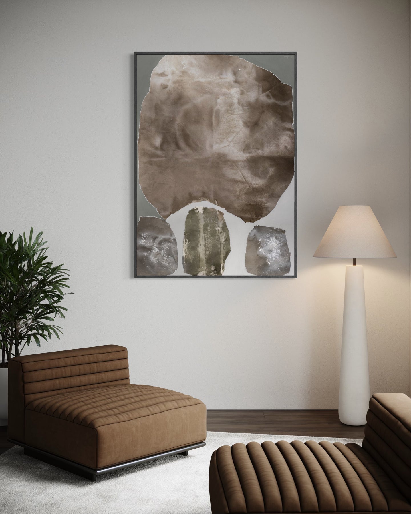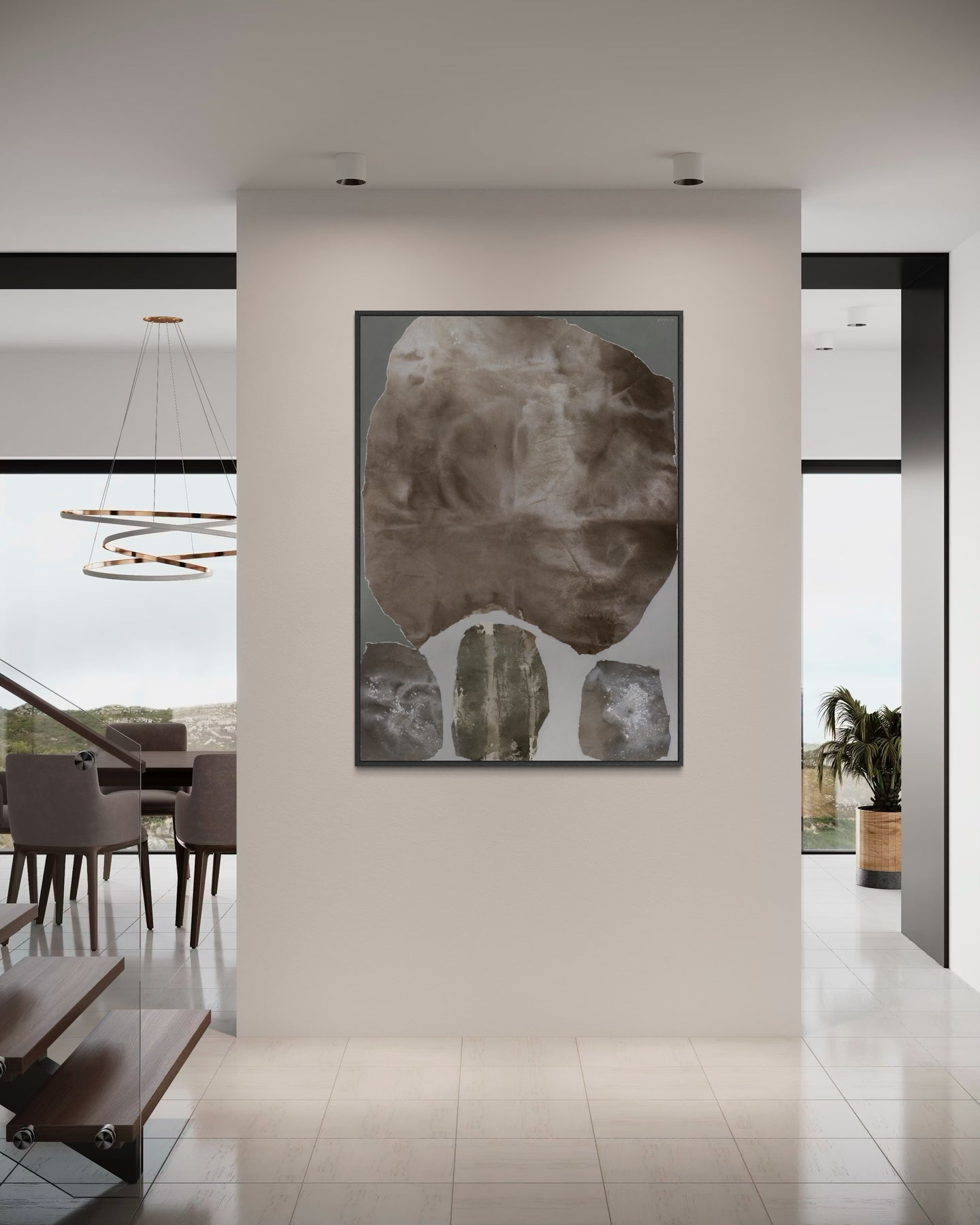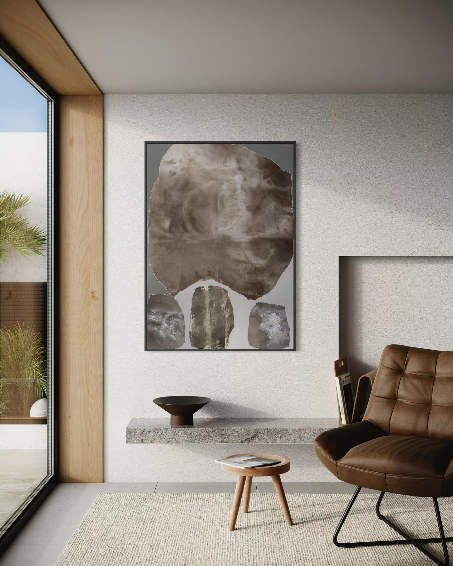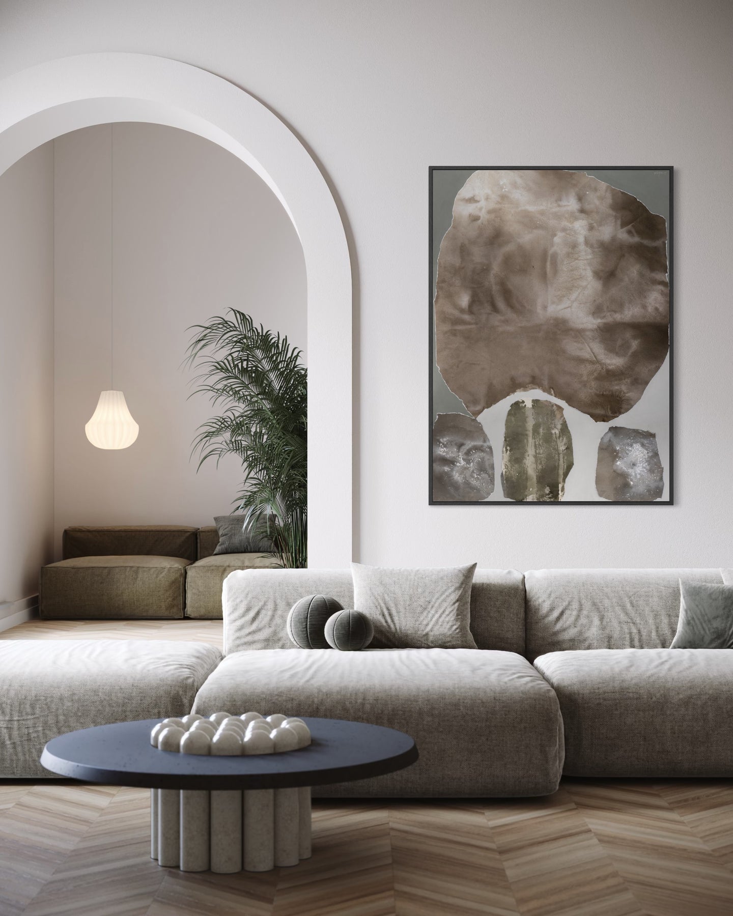 Monika Zajarskiene’s I Feel is a quiet breath of stillness - a composition shaped by soft, naturally flowing tones that settle across the canvas with gentle ease. The earthy palette shifts in subtle gradients, creating an organic visual rhythm that feels both harmonious and tender. These muted transitions and light textures give the artwork a warm presence, allowing it to merge effortlessly with its surroundings and infuse the space with calm.
