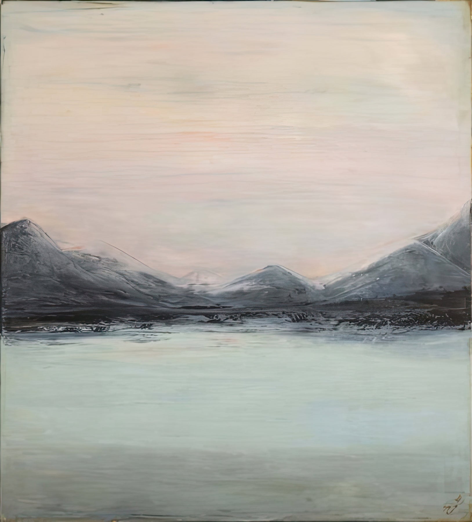 The artist captures not a literal landscape but an inner one - a quiet territory of thought and remembrance. The restrained palette and subtle textures suggest a meditative rhythm, as if the lake itself were breathing, its surface holding unspoken emotions beneath. It is a vision of solitude that feels both tender and infinite.