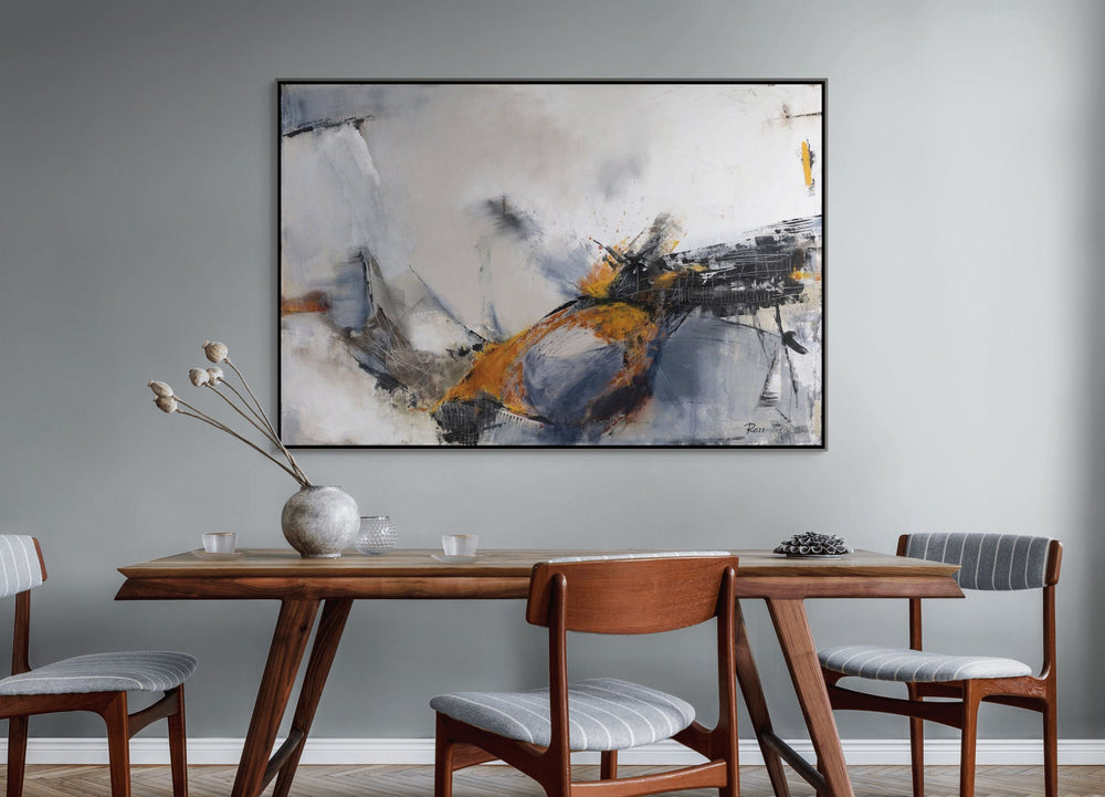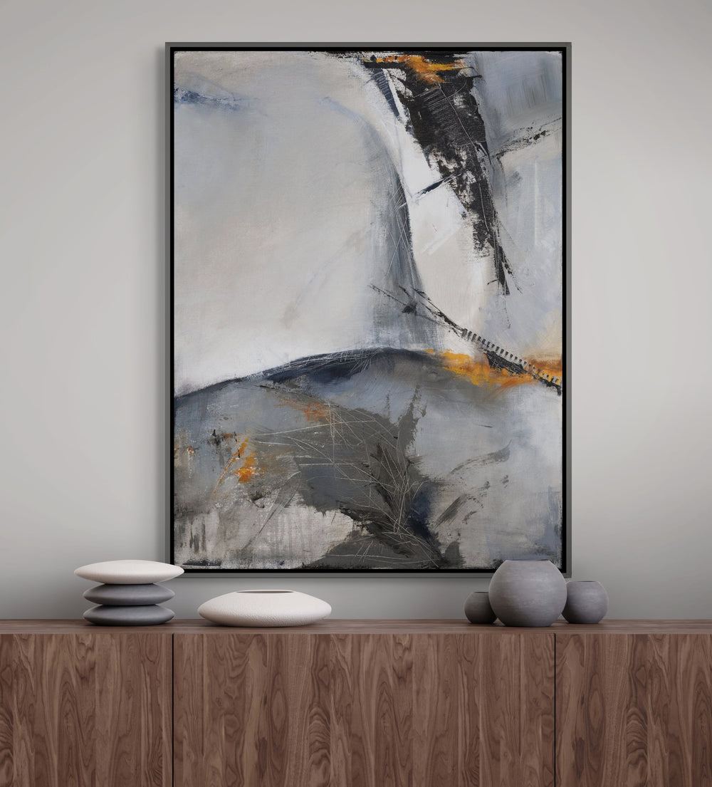 Her creative process is profoundly intuitive and emotional. Rasa paints spontaneously, allowing subconscious rhythms to guide her brush across the canvas. Layering muted grays and deep blues with radiant bursts of yellow and ochre, she builds textures that feel both raw and meditative. Her abstract compositions often reveal a subtle dialogue between light and shadow - between the known and the unseen.